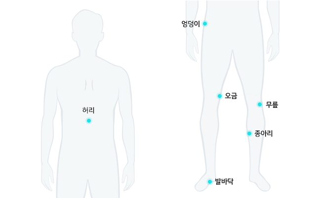 허리, 엉덩이에서 시작된 통증이 다리 전반적으로 이어지고 저리는 느낌이 듭니다.